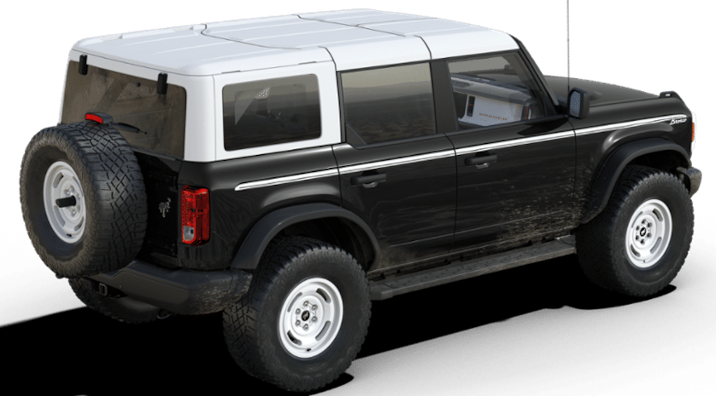 Shadow 2025 Ford Bronco Heritage Edition 4WD 10-Speed Automatic 2.7L EcoBoost V6 4-Wheel Disc Brakes, 7 Speakers, ABS brakes, Air Conditioning, Alloy wheels, AM/FM radio: SiriusXM with 360L, AM/FM Stereo, Auto High-beam Headlights, Auto-dimming Rear-View mirror, Automatic temperature control, Brake assist, Compass, Connected Navigation, Convertible HardTop, Convertible roof lining, Delay-off headlights, Driver door bin, Driver vanity mirror, Dual front impact airbags, Dual front side impact airbags, Electronic Stability Control, Emergency communication system: 911 Assist, Exterior Parking Camera Rear, Front anti-roll bar, Front Bucket Seats, Front Center Armrest, Front dual zone A/C, Front fog lights, Front reading lights, Front wheel independent suspension, Fully automatic headlights, Glass rear window, Heated door mirrors, Heated front seats, Heated steering wheel, Illuminated entry, Integrated roll-over protection, Leather Shift Knob, Low tire pressure warning, Navigation system: Connected Navigation, Occupant sensing airbag, Outside temperature display, Overhead airbag, Overhead console, Panic alarm, Passenger door bin, Passenger vanity mirror, Plaid Cloth Front Heated Bucket Seats, Power door mirrors, Power steering, Power windows, Radio data system, Rear window defroster, Rear window wiper, Remote keyless entry, Security system, SiriusXM w/360L, Speed control, Split folding rear seat, Steering wheel mounted audio controls, SYNC 4, Tachometer, Telescoping steering wheel, Tilt steering wheel, Traction control, Trip computer, Variably intermittent wipers, Wheels: 17" Unique White.