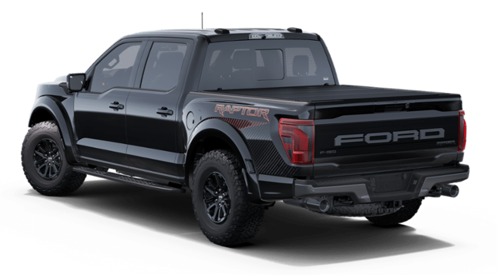 Black 2025 Ford F-150 Raptor 4WD 10-Speed Automatic 3.5L V6 EcoBoost 4WD, 14 Speakers, 17" Cast Aluminum Wheels, 4-Wheel Disc Brakes, ABS brakes, Adjustable pedals, Air Conditioning, Alloy wheels, AM/FM radio: SiriusXM with 360L, Auto High-beam Headlights, Auto tilt-away steering wheel, Auto-dimming door mirrors, Auto-dimming Rear-View mirror, Automatic temperature control, Brake assist, Bumpers: body-color, Compass, Delay-off headlights, Driver door bin, Driver vanity mirror, Dual front impact airbags, Dual front side impact airbags, Electronic Locking w/4.10 Axle Ratio, Electronic Stability Control, Emergency communication system: SYNC 4 911 Assist, Front anti-roll bar, Front Bucket Seats, Front Center Armrest, Front dual zone A/C, Front fog lights, Front reading lights, Front wheel independent suspension, Fully automatic headlights, Garage door transmitter, Heads-Up Display, Heated door mirrors, Heated front seats, Heated rear seats, Heated steering wheel, Illuminated entry, Lane Departure Warning System, Leather steering wheel, Leather Trimmed Seats, Low tire pressure warning, Memory seat, Navigation system: Connected Navigation, Occupant sensing airbag, Outside temperature display, Overhead airbag, Overhead console, Panic alarm, Passenger door bin, Passenger vanity mirror, Pedal memory, Power door mirrors, Power driver seat, Power passenger seat, Power steering, Power windows, Radio data system, Radio: B&O Unleashed Sound System by Bang & Olufsen, Rain sensing wipers, Rear reading lights, Rear step bumper, Rear window defroster, Remote keyless entry, Security system, Speed control, Speed-sensing steering, Split folding rear seat, Steering wheel memory, Steering wheel mounted audio controls, SYNC 4 w/Enhanced Voice Recognition, Tachometer, Telescoping steering wheel, Tilt steering wheel, Traction control, Trip computer, Turn signal indicator mirrors, Variably intermittent wipers, Ventilated front seats, 4WD.