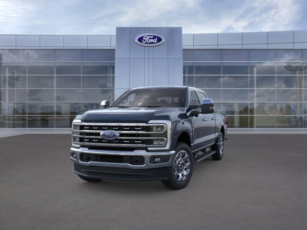 Blue Metallic 2025 Ford F-350SD Lariat 4WD 10-Speed Automatic 7.3L V8 PFI SOHC 16V Federal 405hp 4WD, 190 Amp Alternator, 4-Wheel Disc Brakes, 410 Amp Dual Alternators, 6" Angular Bright Anodized Step Bars, 8 Speakers, ABS brakes, Adjustable pedals, Air Conditioning, Alloy wheels, AM/FM radio: SiriusXM with 360L, Auto High-beam Headlights, Auto-dimming Rear-View mirror, Automatic temperature control, BLIS w/Cross-Traffic Alert, Brake assist, Bumpers: chrome, Chrome Door Handles, Chrome Exhaust Tip, Chrome Package, Compass, Delay-off headlights, Driver door bin, Driver vanity mirror, Dual AGM 68 AH Battery, Dual front impact airbags, Dual front side impact airbags, Electronic Stability Control, Emergency communication system: SYNC 4 911 Assist, Flow-Through Console, Front ActiveX Trimmed 40/Console/40 Seats, Front anti-roll bar, Front Bucket Seats, Front Center Armrest, Front dual zone A/C, Front fog lights, Front reading lights, Fully automatic headlights, FX4 Off-Road Package, Garage door transmitter, Heated door mirrors, Heated front seats, Heated rear seats, Heated steering wheel, Hill Descent Control, Illuminated entry, Low tire pressure warning, Memory seat, Navigation System, Off-Road Specifically Tuned Shock Absorbers, Order Code 618A, Outside temperature display, Overhead airbag, Overhead console, Panic alarm, Passenger door bin, Passenger vanity mirror, Pedal memory, Power door mirrors, Power driver seat, Power passenger seat, Power steering, Power windows, Power-Sliding Rear-Window w/Defrost, Privacy Glass, Radio: B&O Sound System by Bang & Olufsen, Rain sensing wipers, Rear Parking Sensors, Rear reading lights, Rear seat center armrest, Rear step bumper, Rear window defroster, Remote keyless entry, Security system, SiriusXM Radio w/360L, Snow Plow Prep Package, Speed control, Split folding rear seat, Steering wheel mounted audio controls, SYNC 4 w/Enhanced Voice Recognition, Tachometer, Tailgate Step & Handle, Telescoping steering wheel, Tilt steering wheel, Traction control, Trip computer, Turn signal indicator mirrors, Unique Chrome Mirror Caps, Unique FX4 Off-Road Box Decal, Upfitter Switches (6), Variably intermittent wipers, Ventilated front seats, Wheels: 18" Bright Machined & Carbonized Gray Alum, Wheels: 20" Chrome PVD Aluminum, 4WD.