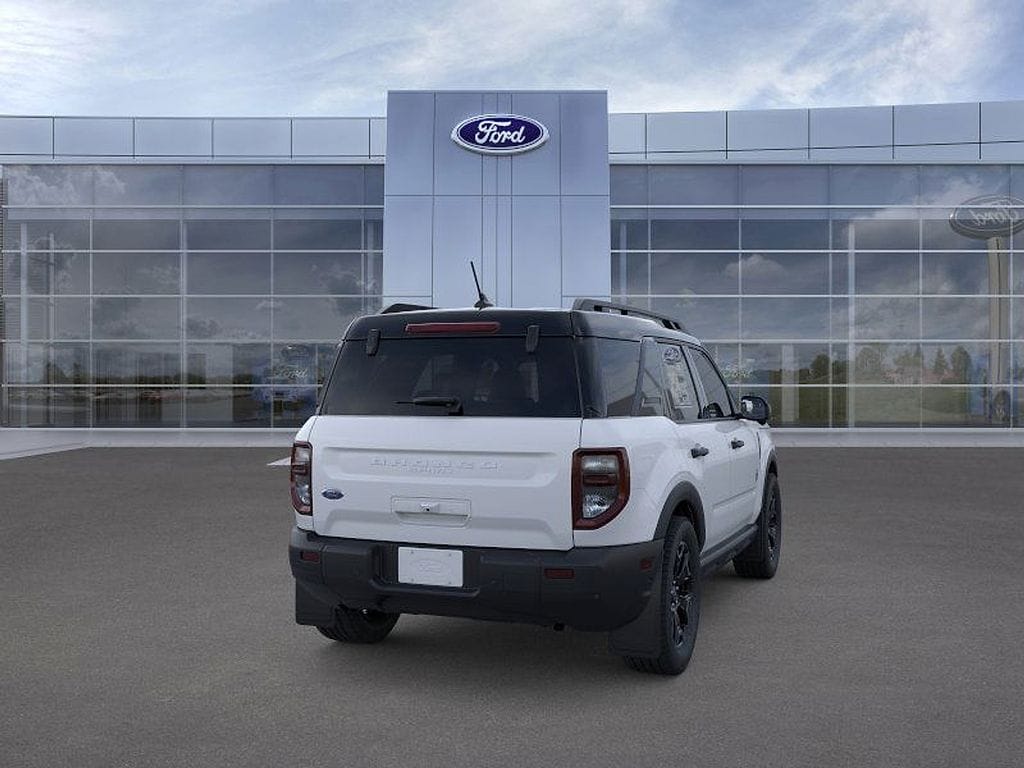 White 2026 Ford Bronco Sport Outer Banks 4WD 8-Speed Automatic 1.5L EcoBoost 4-Wheel Disc Brakes, 6 Speakers, ABS brakes, Air Conditioning, Alloy wheels, AM/FM radio: SiriusXM with 360L, AM/FM Stereo, Apple CarPlay/Android Auto, Auto High-beam Headlights, Auto-dimming Rear-View mirror, Automatic temperature control, Brake assist, Compass, Delay-off headlights, Driver door bin, Driver vanity mirror, Dual front impact airbags, Dual front side impact airbags, Electronic Stability Control, Emergency communication system: SYNC 4 911 Assist, Exterior Parking Camera Rear, Ford Connectivity Package (1-Year Included), Four wheel independent suspension, Front anti-roll bar, Front Bucket Seats, Front Center Armrest, Front Driver/Passenger Seat Back Map Pockets, Front dual zone A/C, Front fog lights, Front reading lights, Fully automatic headlights, Heated door mirrors, Heated front seats, Heated steering wheel, Illuminated entry, Internet access capable: 5G Modem - Ford Connectivity Package, Knee airbag, Low tire pressure warning, Memory seat, Occupant sensing airbag, Outside temperature display, Overhead airbag, Overhead console, Panic alarm, Passenger door bin, Passenger vanity mirror, Power door mirrors, Power driver seat, Power passenger seat, Power steering, Power windows, Radio data system, Rear anti-roll bar, Rear Parking Sensors, Rear reading lights, Rear seat center armrest, Rear window defroster, Rear window wiper, Remote keyless entry, Security system, SiriusXM with 360L, Speed control, Speed-sensing steering, Speed-Sensitive Wipers, Split folding rear seat, Steering wheel mounted audio controls, SYNC 4 with Enhanced Voice Recognition, Tachometer, Telescoping steering wheel, Tilt steering wheel, Traction control, Trip computer, Variably intermittent wipers, Wheels: 18" Ebony Black.