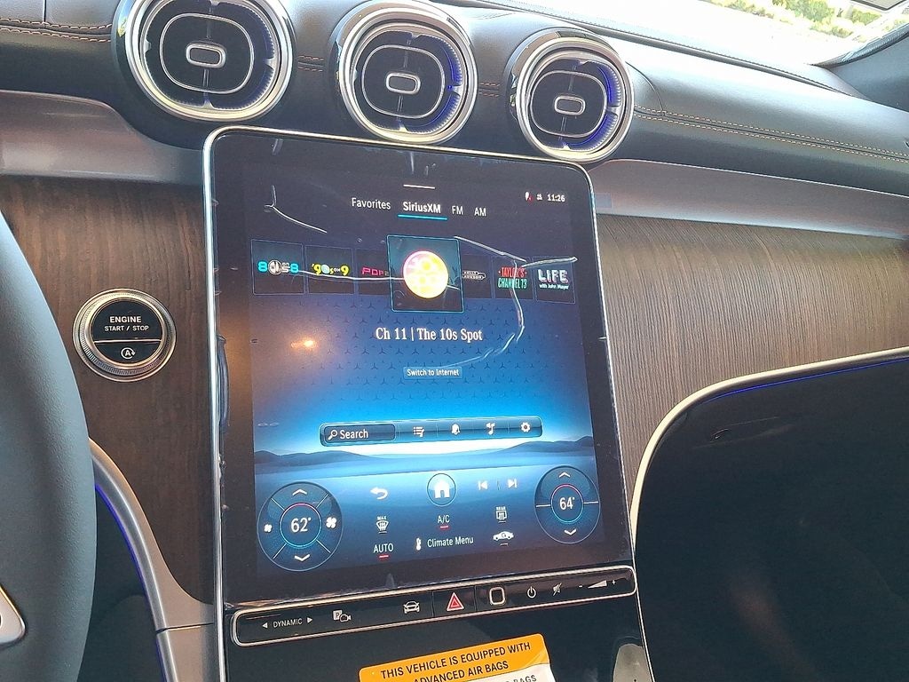 11.9" Center Touchscreen Display, 16-Way Power Front Seats w/Memory & Lumbar, 4-Wheel Disc Brakes, 5G Communication Module, 8 Speakers, ABS brakes, Air Conditioning, Alloy wheels, AM/FM radio: SiriusXM, Apple CarPlay®/Android Auto®, Auto High-beam Headlights, Auto tilt-away steering wheel, Auto-dimming door mirrors, Auto-dimming Rear-View mirror, Automatic temperature control, Brake assist, Bumpers: body-color, Child-Seat-Sensing Airbag, Compass, Delay-off headlights, Driver door bin, Driver vanity mirror, Dual front impact airbags, Dual front side impact airbags, Electronic Stability Control, Emergency communication system: eCall Emergency System, Exterior Parking Camera Rear, Four wheel independent suspension, Front anti-roll bar, Front Bucket Seats, Front Center Armrest, Front dual zone A/C, Front reading lights, Fully automatic headlights, Garage door transmitter: HomeLink, Genuine wood dashboard insert, Head restraints memory, Heated door mirrors, Heated Front Bucket Seats, Heated front seats, Illuminated entry, Knee airbag, Leather steering wheel, Low tire pressure warning, MB-Tex Upholstery, Memory seat, Navigation system: MB Navigation, Occupant sensing airbag, Outside temperature display, Overhead airbag, Overhead console, Panic alarm, Passenger door bin, Passenger vanity mirror, Power adjustable front head restraints, Power door mirrors, Power driver seat, Power Liftgate, Power moonroof: Panoramic, Power passenger seat, Power steering, Power windows, Premium audio system: MBUX, Radio data system, Radio: 3rd Generation MBUX, Rain sensing wipers, Rear anti-roll bar, Rear fog lights, Rear reading lights, Rear seat center armrest, Rear window defroster, Remote keyless entry, Security system, SiriusXM Satellite Radio, Speed control, Speed-sensing steering, Split folding rear seat, Steering wheel memory, Steering wheel mounted audio controls, Steering Wheel Shift Paddles, Tachometer, Telescoping steering wheel, Tilt steering wheel, Traction control, Trip computer, Turn signal indicator mirrors, Variably intermittent wipers, Wheels: 8J x 19" Multispoke, Wireless Android Auto®, Wireless Apple CarPlay®.